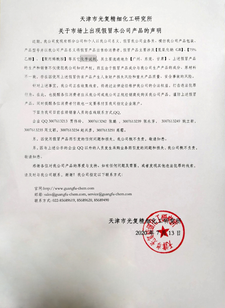 天津市光復(fù)精細(xì)化工研究所 版權(quán)所有(C)2020 網(wǎng)絡(luò)支持 中國化工網(wǎng) 全球化工網(wǎng) 生意寶 著作權(quán)聲明 津ICP備05007054號(hào)